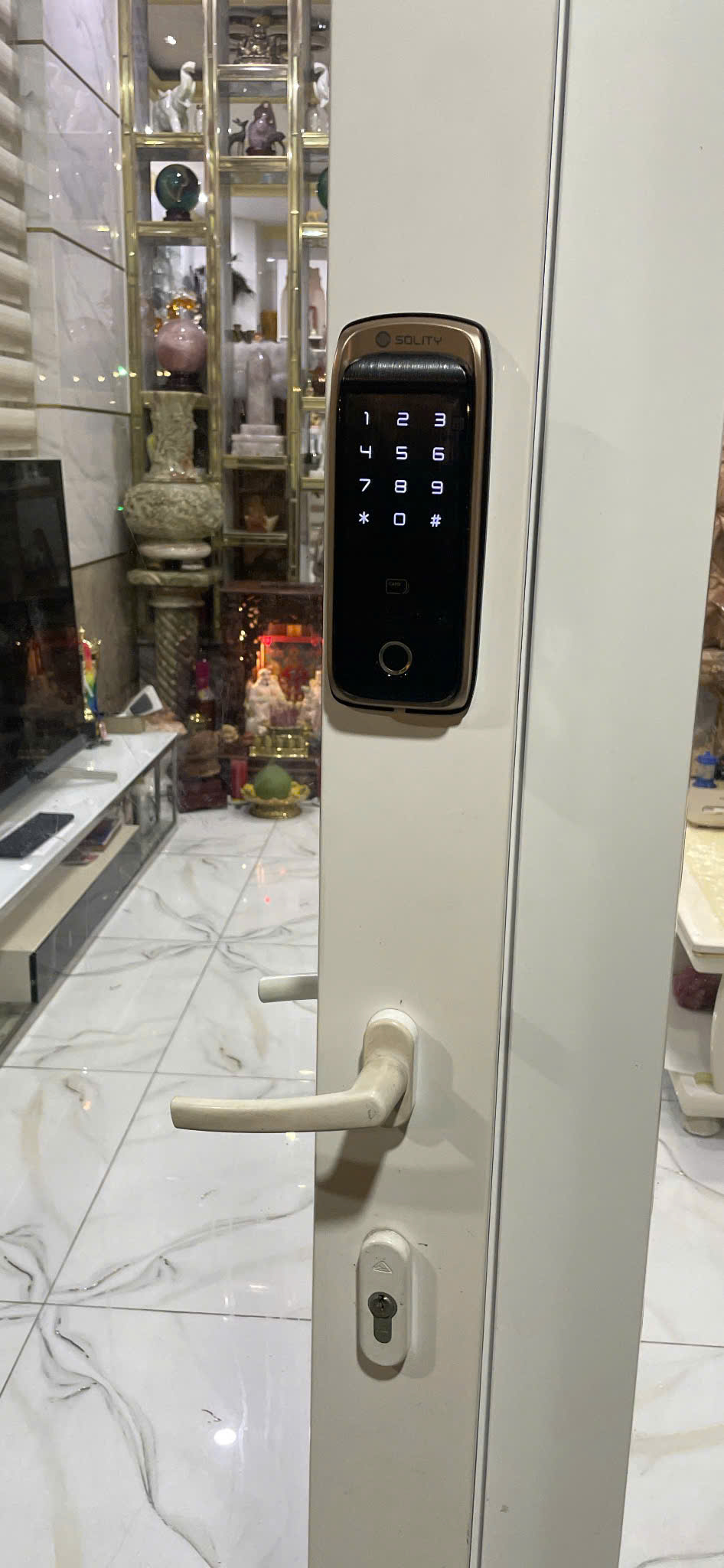 Khoá thông minh Solity lắp đặt cho cửa nhựa lõi thép